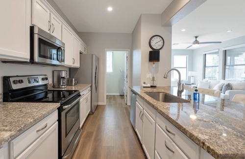 Retreat to the Master bedroom that features a King size bed, 40" smart TV with Cable, dresser, walk in closet and private master bathroom that has double sinks and walk in shower. The guest bedroom has a queen size bed and a 28" Smart TV with Cable. The Guest bathroom has tub/shower combo and single sink.