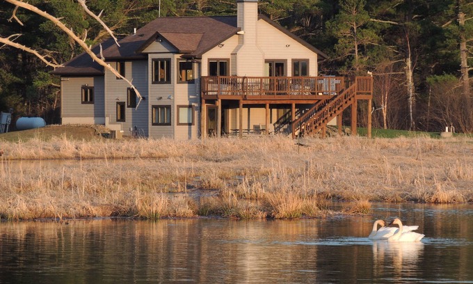 Whitetail Waters is the perfect destination for a traveler seeking privacy, comfort and relaxation in a modern cabin setting. Our fully furnished 2-story, 3 bedroom, 2 bath Cabin offers air conditioning and an attached heated garage for extra storage space. Free WiFi. Located just 8 miles south of Ashland, Wisconsin on 237 beautiful acres of woods and wildlife ponds, you will be secluded, yet minutes away from great shopping and restaurants in Ashland. Come view/photograph wildlife right off the deck of the cabin. Great place to see the Northern Lights. Free Unlimited High-Speed Internet.