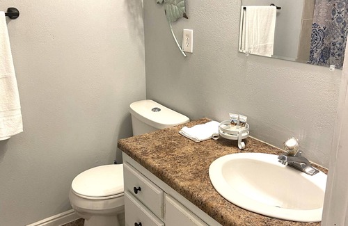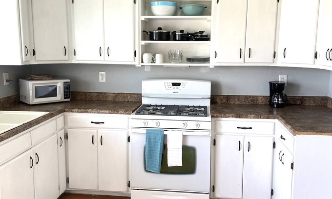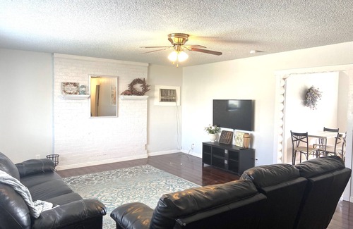 Comfy 3 bedroom, 2 bathroom home with plenty of space! Living room has 2 comfortable couches with a large screen TV, and Roku for streaming. Local channels are also available. Two full bathrooms, stocked kitchen and laundry room make this house a great choice for travelers!