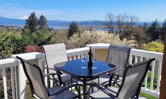 One bedroom (queen bed) apartment with amazing views of Mt Hood, Columbia River and the Gorge. 15 minutes from PDX. Within walking distance of parks and beautiful downtown Camas. A short bike ride or drive to Lacamas Lake, Steigerwald Lake National Wildlife Refuge, and the Columbia River. You can spend all day visiting Camas' many pubs, restaurants, wine tasting venues, book stores, retail stores, etc. A longer drive will take you within the Gorge for hiking, biking, dining and more wine tasting.