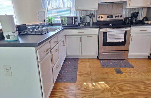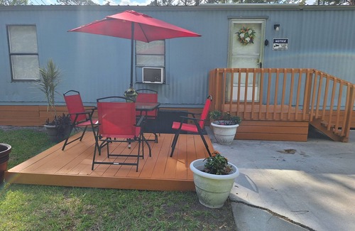 Your home away from home in Hinesville with 2 bedrooms. This cool mobile home features 1 queen bed and 1 twin bed, perfect for a small group of guests. Enjoyable amenities like WiFi, AC, and a washing machine are provided for your convenience. Our place will help you feel at home while you're traveling in Hinesville.