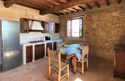 This carefully restored complex is located in the middle of the fields of the Val di Cecina, a few steps from the river of the same name. Much attention was paid to the construction of the swimming pool, where a hydromassage ( about 11 people) and a children's pool carved into the stone were created. Resort "Podere la Querciola", 2 storeys, renovated in 2021, surrounded by meadows and fields. In the district of Casino di Terra 11 km from the centre of Guardistallo, 14 km from the centre of Cecina, in a secluded, quiet position, 16 km from the sea. For shared use: property with plants and trees, swimming pool (6 x 11 m, depth 150 cm, seasonal availability: 01.May. - 15.Oct.). Children's pool, outdoor shower, hot tub, garden furniture, barbecue. In the complex: WiFi, washing machine (extra). Motor access (700 m via unmade road). Parking. Shop 11 km, restaurant 2 km, bar 2 km, bus stop 1.1 km, sandy beach "Marina di Cecina" 16 km. Nearby attractions: Volterra 24 km, Pisa 70 km, Firenze 100 m.