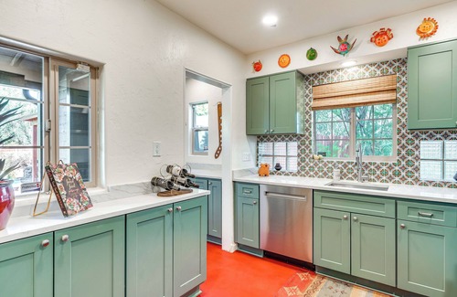 Unwind in the sunshine with a stay at this vibrant and charming Arizona home! Built in 1947, this updated 2-bedroom, 1-bath vacation rental is a piece of Tucson's history. Grill a tasty meal and laugh with loved ones underneath the gazebo's string lights. Going out? Take a short drive to top attractions like Tucson Botanical Gardens, the University of Arizona, or Reid Park Zoo. There's something for everyone!