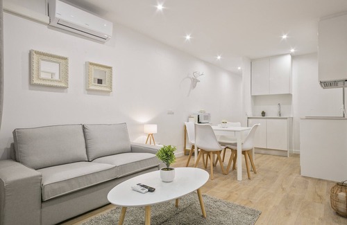 Fantastic newly renovated and fully equipped apartment, ideal for a couple, a family, or a small group of up to 4 people. Offers maximum comfort. If you visit Barcelona, be it for relaxation or work, this is ideal for you.We have tried to make the most of its 65m2 to ensure that our guests have a great experience during their stay in Barcelona.It has a living-dining room that receives natural light from the street, whose carefully selected Nordic furniture makes it a fresh and welcoming space. The area is equipped with a comfortable sofa, coffee table, Smart TV and dining table for 4 people.The kitchen, open to the living room, is modern and fully equipped with a ceramic hob, oven, microwave, Nespresso coffee machine, and all the necessary kitchen utensils. There is an interior patio where the refrigerator, the washing machine, and the dryer are located right next to the kitchen. There you will also find a clothesline, iron and ironing board.The apartment has free high-speed WiFi.The bathroom is a perfect space to take a good relaxing shower after a long day visiting the city.It has three rooms:1 exterior room facing the street with double bed, wardrobe, and Smart TV.2 interior rooms with a single bed and a wardrobe each. One of them also has a Smart TV.