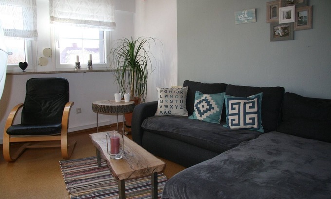 Die modern eingerichtete Ferienwohnung ist 60qm groß und perfekt für zwei Personen geeignet. Die Ferienwohnung liegt im 1. Stock und ist zusätzlich mit einem Treppenlift erreichbar. Bei der Einrichtung wurde besonderen Wert auf eine gemütliche Atmosphäre gelegt. Für angenehme Temperaturen ist eine Klimaanlage vorhanden. Eine Terrasse gibt es auch. Der Wohnraum ist mit einem Sofa und einem Flachbild-TV ausgestattet, das separate Schlafzimmer mit einem Doppelbett. Das Fußende des Bettes ist offen. Die Küche ist mit Kühlschrank, Mikrowelle, Toaster, Wasserkocher, Geschirr und allen wichtigen Utensilien bestückt. Im Badezimmer sind Handtücher und Fön vorhanden. Das Highlight ist eine komfortable Whirlpool-Badewanne mit Beleuchtung. Genießen Sie Ihre freie Zeit und entspannen Sie sich. Eine Grundversorgung an Lebensmitteln befindet sich bei Ihrer Ankunft im Kühlschrank und ein Brötchengutschein aus unserer hauseigenen Bio-Bäckerei. Selbstverständlich ist kostenfreies WLAN verfügbar.