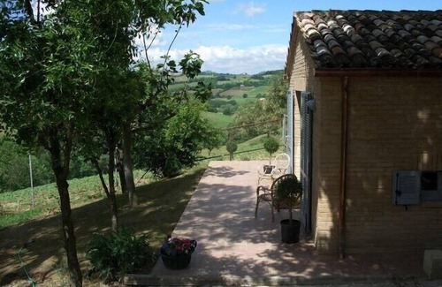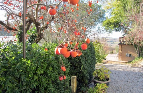 I rent a 50 square meter guest house in the Marche, at the foot of the village of Monte Giberto, 20 minutes from the beautiful sandy beach of the Adriatic Sea. The house is located, a bit away from the main house (Casa Ambra), in the picturesque solitude of an olive grove to one side and a large orchard to another. The view extends to the Monte Sibillini, which are suitable for skiing up to 2450 m in winter. A swimming pool (5 x 10 meters) with a depth of 1.80 m invites you to swim and under the big laurel trees you can dream in the hammock. The houses include a 1500 square meter garden, where in addition to 4 different types of figs also peaches, apricots, tangerines, oranges, grapefruit, kakis, plums, table grapes and various vegetables grow. You are welcome to, for the holidays, serve! House and garden are surrounded by a high fence, whose gate is opened electrically. The main house is not rented, but only inhabited by the owner, so no bustle!