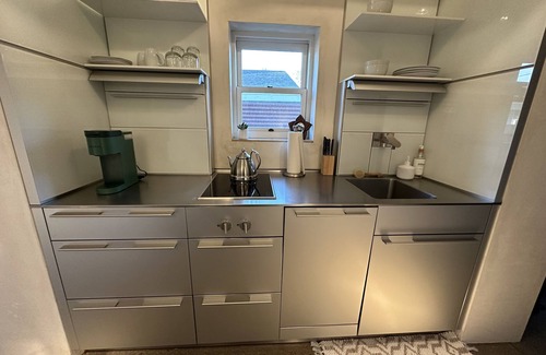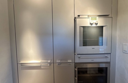 It's a modern and cool space with tasteful design. Kitchen has top-notch built-in appliances, including a wine cooler fridge and a Keurig coffee maker. Excellent amenities throughout and automated shades. Well-lit rooms and a smart TV for entertainment.
