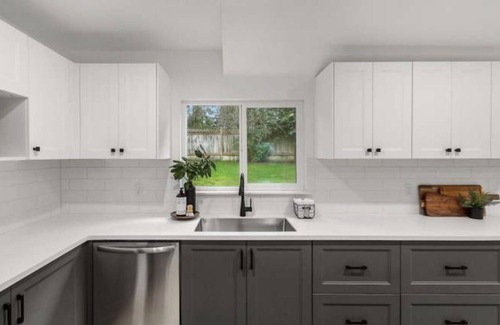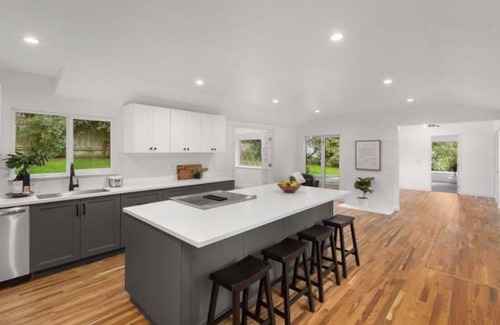 This house near downtown Milwaukie is ideal for a long stay and offers the perfect combination of beauty and convenience. with a secluded, peaceful, and lovely neighborhood :), it has the amenities needed for your stay. very large fully equipped kitchen, toaster, crook pots, baking dishes, separate refrigerator, and pantry area.