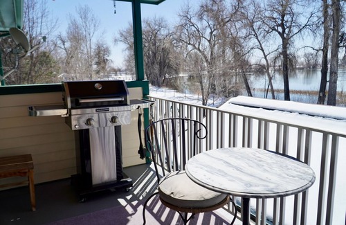 Hi Speed Internet.. Lake Front… Nestled in the Country… Serene and Beautiful Setting... Two Miles to Interstate and Town… Gated Entry…. Business Travelers…. Couples…. Clean, Comfortable, Homey…. No Shared Spaces…. Washer and Dryer…. Two Spacious Bedrooms…. 420 Friendly…. Balcony with grill and Lake views and an efficiency kitchen with full size fridge. Primary bedroom has a King bed, secondary bedroom has a queen bed. The space is on the second floor of an estate home. Entrance for guests is the front door. The town is walking or biking distance. A coffee shop, bank, restaurant, fitness center, tennis courts, etc.. quaint, charming welcoming, truly a small town atmosphere. We are centrally located to Boulder, Denver and Fort Collins, a 30 minute drive. Estes Park is 45 minutes. Easy commute to Rocky Mountain National Park. No cleaning fees.
