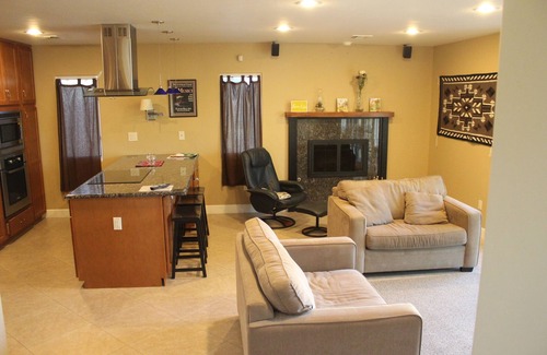This spacious modern (2010) 800 Sq.ft. Guest house has a full kitchen (Oven Range, D/W, M/W, Refrigerator, Keurig Coffee Maker), King size bed and large walk-in shower, Satellite T.V. and Wireless Internet. Washer and dryer. Site is conveniently located just minutes from Downtown,University of Arizona and all major Gem Show locations. One block to City bus. Located in a central Tucson neighborhood there are several restaurants within walking distance. Randolph Municipal Golf Course and Reid park Zoo are nearby.