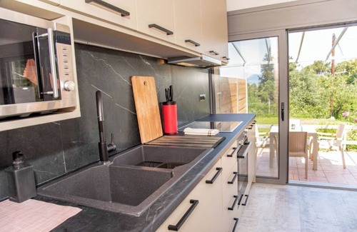 The Gems Fedra apartment features thoughtfully designed amenities to enhance your stay, including a spacious bedroom with a luxurious king-size bed, a cozy living room with a double sofa bed, and an open-plan fully equipped kitchen. Each apartment also boasts a stylish bathroom with a shower and smart appliances to ensure your convenience. Step outside onto your private outdoor space, ideal for sipping morning coffee or celebrating with a glass of wine as you relish the serene sounds of nature surrounding you.