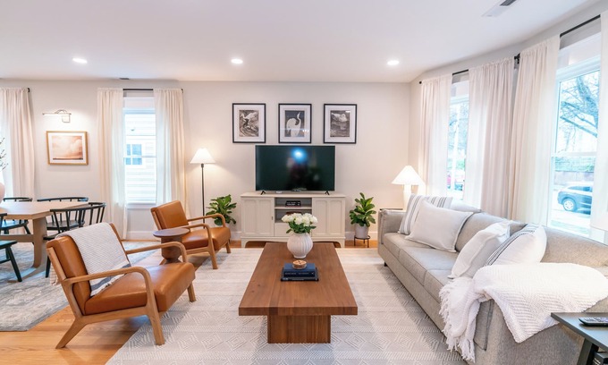 Welcome to Gemstone! Nestled on a quiet, tree-lined street, this architect designed space is just minutes from Yale Campus and downtown New Haven. Both beautiful and functional, it has been fully renovated and thoughtfully crafted to feature both modern and classic elements. In addition to two bedrooms and two full bathrooms, it includes everything you need to feel comfortable: central air, washer/dryer, WiFi, a 4-seat breakfast bar, new appliances, easy parking, and a 6-person dining table.