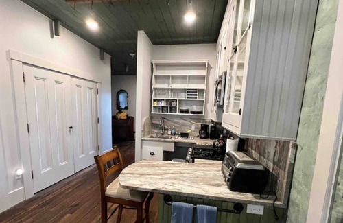 Completely remodeled 1800s New Farmers Store is perfectly located in the heart of Ferdinand. Walking distance to many great restaurants, bars, coffee shops and local stores. Features a fully stocked kitchen, one bedroom with two beds, large living area, lower patio and upper deck.