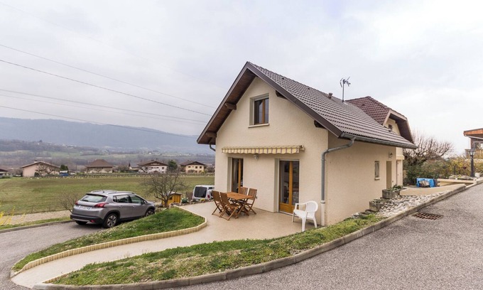 Gite in the owner's adjoining house. On 2 levels with independent access and on one level. Ground floor: entrance hall, living room-kitchen with lounge area, CD/radio/MP3/Vinyl player, Blu-Ray DVD, 1 bedroom (1 bed 140 X 190 cm memory foam mattress), bathroom water (large shower), separate WC. Upstairs (access by a spiral staircase): 1 bedroom (2 single beds), shower room with WC. Electric shutters. Sheets and household linen included. Beds made on arrival. Tarmac terrace. Fenced and shared land. Alpine and cross-country skiing at La Féclaz. Body of water (supervised swimming) with leisure base at St Pierre d'Albigny 9 km away. Contemporary house located at the entrance of a small village at the foot of the Bauges Regional Natural Park, 20 km from Chambéry. Quiet residential area on a south-east facing hillside. Very comfortable cottage with great amenities. Pleasant cachet. Beautiful closed property with a carefully flowered and maintained garden. Private terrace with garden furniture and barbecue. Unobstructed view of the Coeur de Savoie valley and the Belledonne massif. All shops and services in Montmélian, open all year.