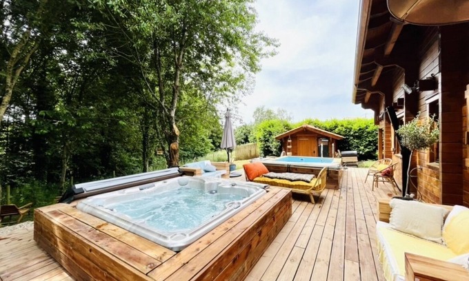 Genuine wooden chalet with spa and pool 10 minutes from the beaches of the Vendée | Ski Chalet in Talmont-Saint-Hilaire