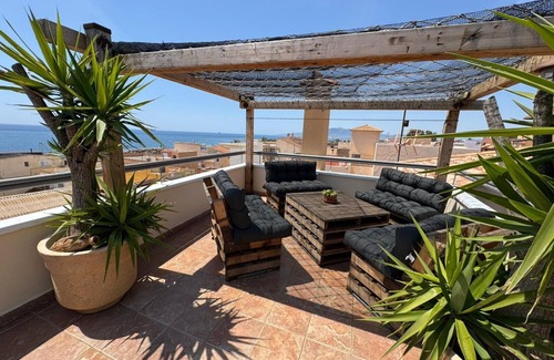At 60 meters from the sea penthouse third floor three bedrooms, furnished living room kitchen terrace.