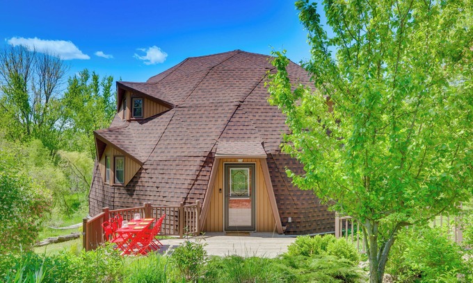 Dome sweet dome! This wildly unique 3-bed, 1-bath rental awaits picture-perfect moments and long-lasting memories. Explore Devil's Lake or Mirror Lake state parks, make a short hop to Dells and local wineries, or enjoy an on-site stroll along the 18-acre Baraboo River frontage. After, unwind on the furnished deck while your family cozies up by the great room fireplace. The turntable is loaded with 1970’s vintage LPs to complete the groovy retro vibe. Do the dome. Your geodesic oasis is calling!