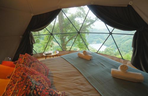 Geodesic Domes with Best Views in Ribeira Sacra is a recently renovated luxury tent in Pincelo where guests can make the most of its open-air bath and garden. 27 miles from As Burgas Thermal Springs and 26 miles from Auditorium - Exhibition Center, the property provides barbecue facilities and a shared lounge. The luxury tent also offers free Wifi, free private parking, and facilities for disabled guests. At the luxury tent, all units have a outdoor furniture. All units are air conditioned and include a seating and/or dining area. At the luxury tent, the units have a private bathroom and bed linen. À la carte and continental breakfast options with warm dishes, local specialities, and pancakes are available. Guests can take advantage of yoga classes held in house. An indoor play area is also available at the luxury tent, while guests can also relax on the sun terrace. Santiago de Compostela Airport is 72 miles from the property.