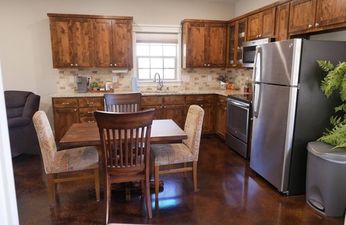 Built in 2018, this one bedroom/one bathroom house features a classic hill country limestone exterior, stained concrete floors, standing-seam metal roof, a full kitchen with stainless steel appliances, and granite countertops. Other features include a Carrier central A/C and heat system with a Nest thermostat, and of course free and fast (400/40) Wi-Fi. Our goal in designing and building this house was that it would feel much bigger than it was, and have everything you would ever want and need, just in a modest footprint. If you read the reviews you'll see that this space always exceeds guest expectations.