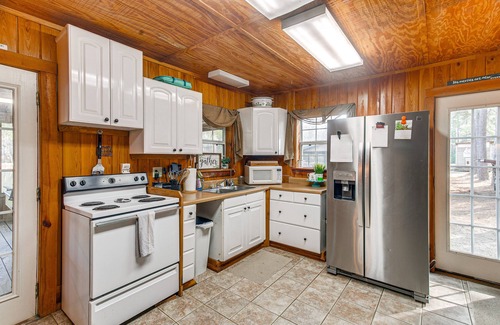 Sneak away to Ocilla, GA, and discover a cozy retreat at this 2-bedroom, 1-bath cabin! Nestled in a serene setting, this vacation rental allows you to savor your morning coffee or stargaze on the deck and screened porch. Discover your new favorite sip at Paulk Vineyards, explore the lovely General Coffee State Park, or simply hang out by the lake just behind the property. This home provides rustic charm and a convenient location, making it perfect for nature lovers and adventure seekers alike.