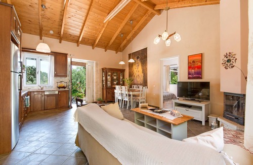 Georgina's House is the perfect hideaway for those looking for peace and quiet, a true away-from-it-all experience! The location is great for walkers, with the dramatic west coast right on your doorstep, dramatic cliffs interspersed with picturesque secluded creeks. There are some charming, authentic Greek villages nearby with tavernas and mini-markets, whilst the bus to the bigger village of Gaios stops just down the road. The villa itself has been tastefully restored retaining its original features such as the flagstone flooring and high ceilings typical of the area, yet with all modern amenities needed for a comfortable and relaxing self-catering holiday. The lounge and both bedrooms are fully air-conditioned, whilst outside sits a covered dining area, ideal for escaping the midday sun. Plenty of sun loungers surround the ample pool terrace, a lovely sun trap for those wishing to top up that tan. If lazing around your own private pool ever becomes run-of-the-mill, then some of Paxos' best beaches are within a 10-minute drive.