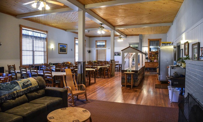 Waunita Hot Springs Ranch historically offered only week long, all inclusive dude ranch stays. Now we offer a less expensive alternative for that special family reunion, corporate retreat, church retreat, ski trip, or get away. This historic lodge can now be called your home for several days or a week On the ground floor you will find a spacious dining hall that will easily accommodate groups up to 50. Comfy living areas where you can sit back and relax, read a book, watch tv, play a game of pool, work puzzles, play games or have meetings. The commercial kitchen is located on the ground floor as well and is equipped with a commercial walk-in freezer and walk-in cooler. A laundry area is located near the kitchen.