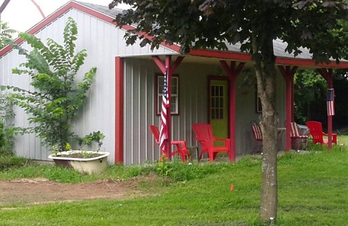 German Haus is a private rustic studio cabin with Queen bed, a rollaway bed, kitchenette, love seat, small chair, kitchen table, and shower bathroom. It's great for the outdoor type person. Equipped with local TV channels, DVD, MW, WIFI, coffee pot, tea pot, kitchen utensils, fridge, and eating table. DOGS ALLOWED @ $25 NIGHT PER DOG. WE DO NOT ACCEPT CHECKIN AFTER 10PM UNLESS LATE CHECKIN HAS BEEN PREARRANGED. THE INTERIOR IS RECYCLED BARN WOOD & TONGUE AND GROOVE PANELING. CABIN IS AS THE PHOTOS SHOW. DO NOT BOOK IF YOU DO NOT LIKE RUSTIC CABIN ATMOSPHERE