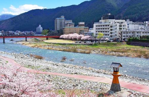 Built and opened in 2012, Gero Onsen Yukyunohana is located along Hida River, a 10-minute walk from JR Gero Station. Free WiFi or wired internet are available in all areas including a peaceful reading room on the 4th floor. Free pick-up service from JR Gero Station is provided. All of its charming guest rooms boast a private natural hot spring bath and river views. Each room features a seating area on tatami (woven-straw) flooring and is decorated with traditional Japanese furniture. The ryokan serves traditional Japanese breakfast and Hida Beef Kaiseki Dinner in the comfort of guest rooms. Hida River is a 1-minute walk away, and a free foot spa site, Gero Onsen Museum and Kaeru Shrine is a 3-minute walk from Gero Onsen Yukyunohana.