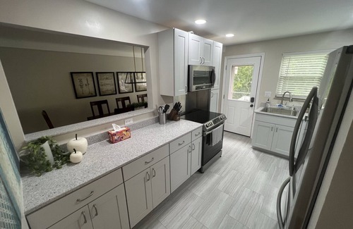Centrally located in the heart of Cincinnati, discover luxury and space in our 4-bedroom, 2-bathroom retreat! This home boasts fully stocked kitchen, 2 king bedrooms with 55" smart TVs, a 4-twin bed room, and a room with 2 triple bunks. Enjoy the elegant living room with a 65" TV, plus a basement game room also equipped with a 65" TV. Your ultimate getaway awaits! Get anywhere (Downtown, Kings Island, Kenwood Mall) in less than 20 minutes! This is your place!