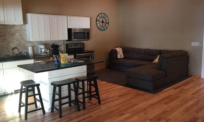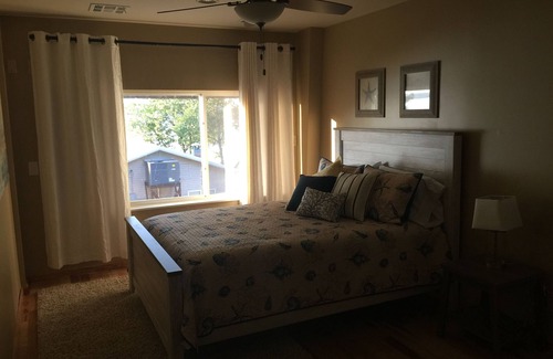 Newly renovated one bedroom one bath with separate loft bedroom. Bedroom has queen bed and hide-a- bed loveseat, and loft has 2 queen size beds. Plenty of room with great views and lake access. Day dock available for swimming, fishing, or simply relaxing. This property has everything you need for a quiet get-a-way from a hectic life. Kitchen is equipped with range and microwave and has a separate laundry area. Take time away to rest and refresh. This unit sleeps 7 with plenty of storage and parking. Please indicate accurate guest count to allow for adequate preparation.