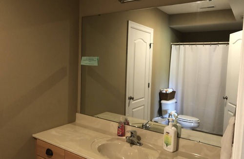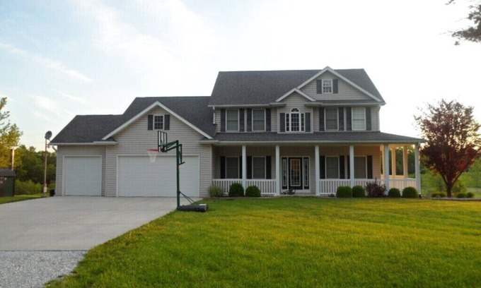 GET AWAY FROM IT ALL! Eastern Mid-Missouri location 15 minutes North of I-70 at Exit 183. Approximately one hour from O'Fallon, MO, Hermann, MO & Columbia, MO! Escape your fast paced life and exchange it for PEACE AND QUIET! Ideal setting for family gatherings, reunions, retreats, golf, football outings, deer camp (no hunting), or possibly a romantic get away. Our picture perfect remote, private lake retreat is surrounded by woods and meadows with no other homes in site on 11 acres. The outdoor setting has a complete package... 2.5 acre STOCKED lake for swimming, paddle boating, canoeing, fishing, kid's playhouse & playground, and an outdoor campfire set up. Plus tons of beautiful views from the deck overlooking the lake or the lower level covered patio- whether you are grilling or chilling-we have it all! NO WORRIES...we have a variety of life jackets, lake toys, and games available for your safety and enjoyment! SWIM at your own risk!