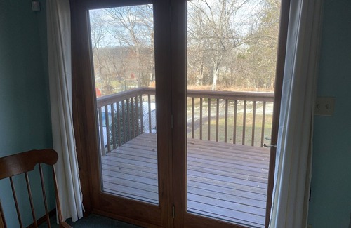 This is a beautiful home in the middle of 90+ acres of valleys, rolling hills, operational pumpkin and hops farm with lots of walking trails through wooded acreage and wonderful views. Pond, creek for fishing. Includes large deck off family room and private deck off master suite. Great way to get away from the city and enjoy lots of space.