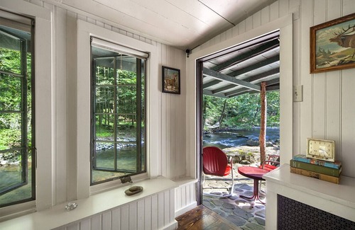The Creek House is a retro-rustic getaway with luxury lodge touches and plush amenities (including free wifi and Roku TV) – all in an ultra-private creekside setting. This peaceful, fully equipped house features design with a mountain cabin feel that takes you back to a simpler time. Plus, you’re close to all the MANY attractions the area has to offer. In fall and winter, enjoy the sounds of a warm, crackling fire and the creek rushing outside your window, and toast friends and family in style, comfort and serenity. In spring and summer, fish from your wooden bridge, have dinner on the back rock patio and sit in the cedar hot tub. It's creekside and under the stars! (We are now trying to keep the CEDAR HOT TUB operational during Late Fall/Winter season -- although we cannot never 100% guarantee it's use. It's new but can be temperamental.)