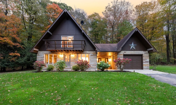 Escape to this charming family cabin nestled in the Laurel Highlands, offering the perfect balance of seclusion and comfort. Getaway Chalet sits on 1.5 acres of private land with a wooded backyard. This spacious home provides all the room you need to relax and unwind after an adventurous day in the mountains. Whether you're grilling dinner, enjoying a campfire under the stars, or simply lounging in the hammock, this is the place to disconnect and enjoy quality time together. The property even features a seasonal apple tree and raspberry bushes for a little extra touch of nature!