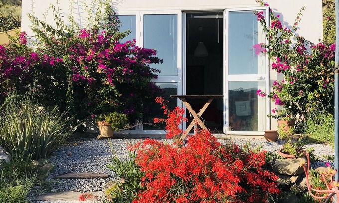 This striking independent guesthouse (studio) is set in a mountainside submerged in an unspoiled Sicilian nature, with views to a valley and the small village of Lascari (1 km plus 500 m of country road).