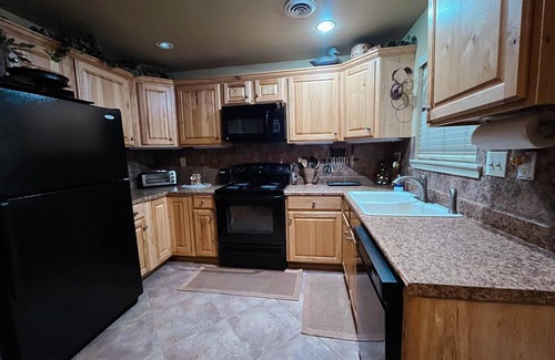Getaway from the busy life in the city and come stay at our rental on Lake Hudson. A truly hidden gem with 3 bedrooms and 2 full bathrooms. Kitchen comes equipped with utensils, cookware and bakeware. A large back patio to sip your coffee and enjoy the views of the lake. Just a short walk, you can explore the backyard or walk onto the rock shores of Lake Hudson. Fishing rods and lures are provided upon request. Enjoy the nights around the the firepit making smores with the little ones or family game night with our arrays of board games in our game cabinet. Kick back and watch a movie on the 1 gig fiber connection and finally unwind to a quiet nights rest. Restaurants and a grocery store is just a short drive away. Make some new memories here at Getaway on the Hudson.