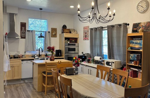 We would like to invite you to stay at Miners Lodge on your way to Yosemite. Miners lodge is situated 25 miles from the entrance gate of Yosemite. Get ready to relax in this 3-bedroom house in Groveland. This charming property features 1 queen bed, 1 bunk bed (2 Twins), and 1 full bed, perfect for families or groups of friends. With a beautiful and spacious high ceiling living room and dinning room area, guests can feel the comforts of their home. Our 2 bathrooms including a bathtub and shower, guests can soak into the tub and relax after outdoor activities.