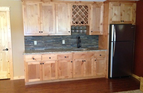 The downstairs consists of a large family room with comfy sectional couch. A 60' TV w/ sound bar is great for watching sports and movies. There is a walk up bar area with a sink and another full size fridge with freezer so you have plenty of room for food/drinks. Bedroom 3 is on this lower level and has a queen size bed. Bedroom 4 is a custom built bunk room that has 2 twin beds over 2 full beds. There is a large full bathroom on this level with double sinks, bath/shower combo.