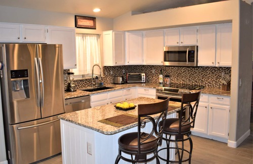 Welcome to your home away from home! This spacious four-bedroom, two-bath home is perfect for a comfortable and relaxing stay. Each of the four bedrooms features a cozy queen-sized bed, and you’ll find four Smart TVs throughout the home . located in the living room, dining area, master bedroom, and one of the guest rooms .all with access to Netflix for your entertainment.