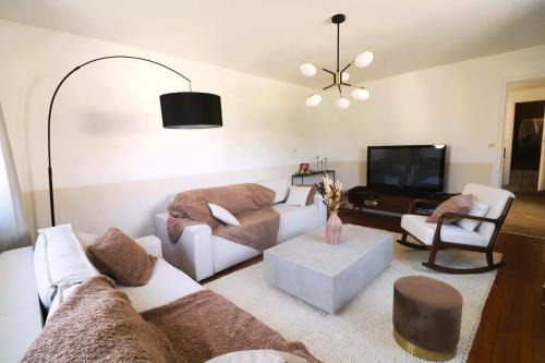 A recently renovated vacation home, Gite à la campagne 4 étoiles - 200m2 offers accommodations in Sailly. This property offers access to a terrace, free private parking, and free Wifi. Outdoor seating is also available at the vacation home. The air-conditioned vacation home consists of 5 bedrooms, 2 living rooms, a fully equipped kitchen with a dishwasher and a coffee machine, and 4 bathrooms with a walk-in shower and slippers. Towels and bed linen are available in the vacation home. There's also a seating area and a fireplace. Guests can relax in the garden at the property. Château fort de Bouillon is 19 miles from Gite à la campagne 4 étoiles - 200m2, while Ardennes Golf Course is 25 miles from the property.