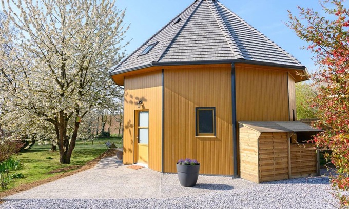 Le Jardin de Jeanne is laid out on 2 levels. On the ground floor, you will have an open living room of 36m² with a lounge area, TV, sofa, board games, dining area and fully equipped kitchen. A bathroom with walk-in shower and wc. Upstairs, you will find 2 bedrooms, both fitted out for 2 people (1 bed 140x190 - 2 beds 90x190). The cottage has all the baby equipment (cot, high chair, bath, reducer, bottle warmer, games for children). You will enjoy an enclosed garden with garden furniture and barbecue, you can park your vehicle there safely. Wireless. Beds are made on arrival, bathroom linen is also included in the rental. Animals accepted: dog only within the limit of 2. The price of the cleaning package for companies is negotiable with the owner. Charging electric vehicles is not possible in the gîte. Charging terminals are less than 4 km away. Welcome to the "Jardin de Jeanne" where animals (only dogs within the limit of 2) are accepted. Our cottage is ideal for a family stay, original 80 m² made in a round house in bioclimatic wood, which meets important ecological construction criteria for Pascale and Rémi, owners of the place. This cottage offers you comfort and light, it is located in Eve in the south of the Oise, 18 km from Senlis and Charles de Gaulle Airport, 21 km from Parc Astérix, 25 km from Chantilly, 45 km from Paris. Enclosed garden, Detached house, Television, Dishwasher, Washing machine, Electric heating, wifi, Companies, Barbecue, Microwaves, Car park, Garden furniture, Terrace, Garden, Pets allowed, Pet deposit, Games for children, Sheets provided. Option to be paid on site: Reserved for companies (cleaning and sheets/15 days): €250. Cleaning charge: €50. Unless stated, services such as cleaning, bed linen, towels etc. are not included in the price of this rental. If pets are allowed (information in the advertisement), charges may be applicable. Only equipment mentioned in this advertisement are present. Equipment not mentioned are not considered to be present.