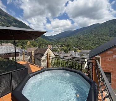 22 miles from Col de Peyresourde in Boutx, GITE 15 Places avec Jacuzzi à BOUTX LE MOURTIS offers accommodations with access to spa facilities. This property offers access to a balcony, free private parking, and free Wifi. The vacation home has an outdoor fireplace and a sauna. Offering a terrace and mountain views, the spacious vacation home includes 4 bedrooms, 2 living rooms, flat-screen TV, an equipped kitchen, and 2 bathrooms with a shower. Guests can enjoy a meal on an outdoor dining area while overlooking the garden views. The accommodation is non-smoking. Guests can make the most of the warm weather with the property's barbecue facilities. Guests at the vacation home will be able to enjoy activities in and around Boutx, like fishing and hiking. A water park is available on-site, and both skiing and cycling can be enjoyed close to GITE 15 Places avec Jacuzzi à BOUTX LE MOURTIS. Luchon Golf Course is 14 miles from the accommodation, while Comminges Golf Course is 18 miles away. Tarbes Lourdes Pyrénées Airport is 57 miles from the property.