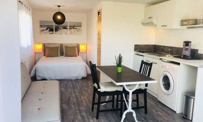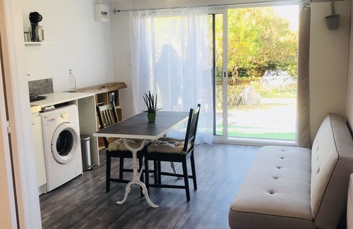 Independent cottage not overlooked any comfort of 26 M2 fully equipped with refined and warm decoration including a main room with double bed, sofa bed, kitchen, washing machine, television,