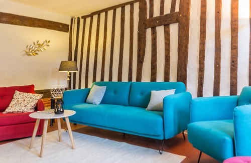 Ground floor : - living room with Cauchoise fireplace equipped with a wood stove, - semi-open kitchen (3-burner induction hob, 2-bowl sink, dishwasher, oven, fridge), - living room with insert fireplace, 110cm flat screen TV, - laundry room (washing machine, dryer, freezer), - small bathroom, - separate toilet, - 1 bedroom for 2 people (2 beds 90x190cm), - 1 bedroom for 2 people (1 bed 140x190cm), Upstairs (attic): - 1 bedroom for 2 people (1 bed 160x200cm, cot with bars and changing table), - 1 bedroom for 2 people (1 bed 160x200cm), - bathroom: small shower cabin (passage width about 35cm door open) with toilet. Outside: - garden furniture, shelter, barbecue, enclosed garden. 2 deposits: 1 for accommodation of €370 and 1 for cleaning of €80. Within the Boucles de la Seine Normande Natural Park, come and discover this beautiful gite fitted out in a traditional house of the Pays de Caux from the end of the 16th century, in half-timbering. Placed between the coast and the Seine valley, you can visit the many abbeys, the typical closed hovels or explore the many identified hiking trails. You will be charmed by the beauty of the Normandy coast, its incomparable landscapes, its generosity and its gastronomy. Rental charges not included in your rental: - cleaning, - bathroom linen, - wood (60€ per cubic meter), - the tourist tax. bedroom(s) on the ground floor, fireplace, enclosed garden, television, wood-burning stove, cot, baby welcome, bathroom. (bath), Children's games, Sheets provided, Internet connection, Private car park, Washing machine, Dishwasher, Cleaning fee, Animals on site, Animals accepted, Tumble dryer, Microwave, Flat screen TV, Freezer, Garden furniture, barbecue, detached house. Option to be paid on site: Household linen kit (towels): €3. Cleaning charge: €80. Unless stated, services such as cleaning, bed linen, towels etc. are not included in the price of this rental. If pets are allowed (information in the advertisement), charges may be applicable. Only equipment mentioned in this advertisement are present. Equipment not mentioned are not considered to be present.