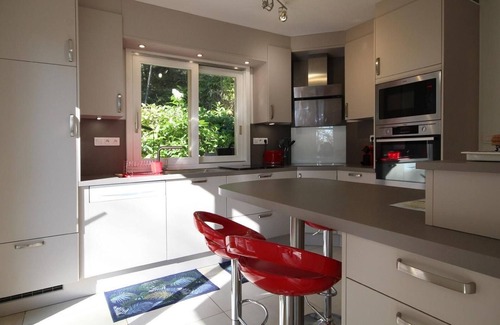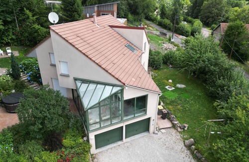 In terms of activities, the region offers great opportunities for cycling, fishing in the surrounding rivers, and gourmet discoveries thanks to local specialties. Amage is an ideal destination for a peaceful stay, combining nature, culture and simple pleasures. Located in the heart of the Vosges Saônoises in the Ballons des Vosges Regional Natural Park, at an altitude of 400 m, large modern villa, ideal for a stay with family or friends, on 3 levels, comprising, in the basement: 1 fitness room with numerous devices, 1 games room with American billiards, board games, Bluetooth sound bar, 1 laundry room with washing machine and dryer. On the ground floor: a modern living/dining room with careful decoration, with flat screen TV, opening onto a bright veranda with a view of the park, a fully equipped kitchen with quality appliances, 1 office/library, 1 double bedroom with 1 King Size bed 180X200, 1 bathroom with bathtub and shower, 1 separate toilet. Upstairs: mezzanine, 4 bedrooms: 1 "child" bedroom with 2 beds of 90X200, 3 bedrooms each with 1 Queen Size bed of 160X200, a bathroom, 1 separate toilet. Outside, a pretty terrace furnished with deckchair and Finnish bath (included in the rental price). A wooden kiosk with garden furniture to take your meals under cover, all this on a plot of 4000 m², in the heart of a forest. The villa benefits from an exceptional view of nature, in a calm and preserved place, a true haven of peace.