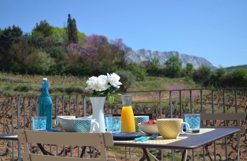 The cottage is situated in the heart of the vineyard, 5 minutes from Aix-en-Provence. A terrace in the heart of the vineyards facing the Sainte-Victoire mountain.