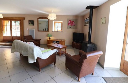 This cottage has a storage room for bicycles or motorbikes and enclosed grounds of 1750 m² with garden furniture and barbecue. On the ground floor, spacious living room with TV, stove (free wood), wifi Internet access, fitted kitchen area, separate toilet. Upstairs, 2 bedrooms with 1 double bed, 2 bedrooms with 130 cm bed, bathroom with shower and bath, separate wc. Electric heating included. Prices all charges included.