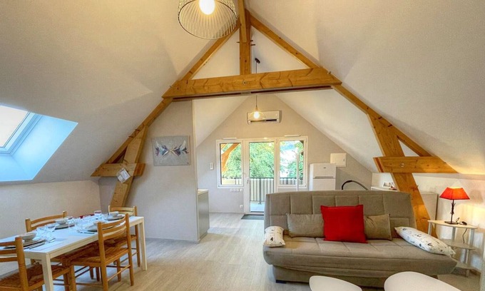 The towpath to the arches of Chenonceau castle is a real treat! Located in a very quiet cul-de-sac, upstairs, your gîte, all inclusive (except tourist tax), offers completely independent access. Its beautiful covered terrace with a view of the church bell tower and the presbytery gardens has been ideally designed and designed to enjoy the outdoors in complete serenity. Upstairs: living room, equipped kitchen (fridge-freezer, 4-burner induction hob, Nespresso pod coffee maker), 1 bedroom (1 160 cm bed), bathroom with wc. WIFI. Heating electric (included in prices). Reversible air conditioning. Parking in the dead end opposite the gîte. Charging station for electric vehicles approximately 100m away. Excellent restaurant nearby. Superb bike rides on the Cher à Vélo route await you. Possibility of storing bicycles under secure shelter. Non-smoking accommodation. Recharging of electric bikes possible in the premises (in addition to be paid directly to the owners). Nestled in a small cul-de-sac leading to the banks of the Cher, your gîte enjoys one of the most strategic locations in the Loire Valley for discovering the greatest riches of the Touraine. Built and fitted out in 2022, it combines comfort, complete equipment and calm. Its volumes, its superb bathroom, its fully equipped kitchen constitute some of the perfect ingredients to make your stay a total success. The castles of Chenonceau, Amboise, Clos Lucé or the Beauval Zoo are within easy reach, as are the other gems of Villandry, the Royal Fortress of Chinon or the Royal City of Loches. Langeais, Azay-le-Rideau, Chaumont-sur-Loire and its International Garden Festival and a little further away Chambord or Blois are also essential. Meetings with our winegrowers for a memorable tasting, trips on a traditional boat or canoe for “nature” moments will create a menu rich in encounters and discoveries. Microwave, Washing machine, Enclosed area, Dishwasher, Television, Garden furniture, Heritage, Comfort, Freezer/Fridge-freezer, Internet:cpl or wifi, Sheets included, Non-smoking, Baby equipment, Heating included , Terrace, Bathroom linen included, Air conditioning, End of stay cleaning included. Unless stated, services such as cleaning, bed linen, towels etc. are not included in the price of this rental. If pets are allowed (information in the advertisement), charges may be applicable. Only equipment mentioned in this advertisement are present. Equipment not mentioned are not considered to be present.