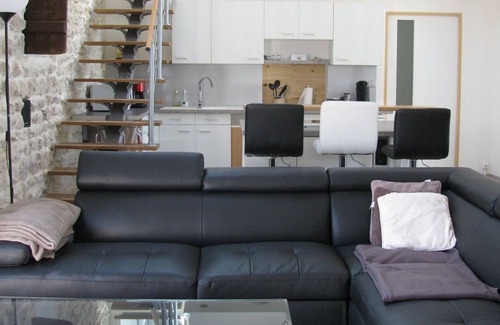 Ideally located in Eure-et-Loir, halfway between Allaines and Artenay and close to Janville, this old barn has been magnificently renovated by the owners, artists/creators and lovers of contemporary art. They have therefore entirely designed the gîte as a cozy loft with judicious fittings, very well equipped and with great amenities that cannot leave you indifferent! Terraced house (150 m²) located in a hamlet, including: On the ground floor : Open kitchen with dishwasher, microwave and refrigerator, 4 electric hotplates, pod coffee maker, microwave, toaster, ... Scullery with 3 gas hobs, washing machine and fridge/freezer Living/dining room with American billiards, wood stove and wifi access 1 bedroom with 2 90 cm beds (baby equipment), sink Bathroom with bathtub and shower, separate toilet Upstairs (access via living room staircase): Mezzanine/bedroom with 1 bed of 160 1 bedroom with 2 beds of 90 Independent WC Upstairs (access via kitchen staircase): 1 bedroom with 1 90 cm bed, shower and sink Unfenced garden (500 m²) with terrace, garden furniture, barbecue, car port and table tennis. Loan of adult bicycles on request (x5) Electric heating. Supply of sheets (beds made), cleaning fee: €90 is obligatory during the Covid period) Non-smoking gîte. Private parking Pets on request to owners Unless stated, services such as cleaning, bed linen, towels etc. are not included in the price of this rental. If pets are allowed (information in the advertisement), charges may be applicable. Only equipment mentioned in this advertisement are present. Equipment not mentioned are not considered to be present.