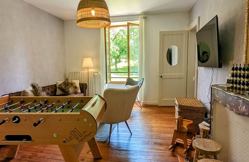 In a quiet area, surrounded by nature, ideal for family or friends stays and in the heart of a 2.6 hectare park, fully enclosed, with a private secure pond (fishing possible), private spa and swimming pool secured by a dome (heated from April to October), terrace with barbecue and rotisserie, deckchairs, pétanque court, table tennis, children's playground, darts, outdoor games... shelter for camper vans. Private parking on site. Fully enclosed grounds. In a quiet area, surrounded by nature, ideal for family or friends stays...